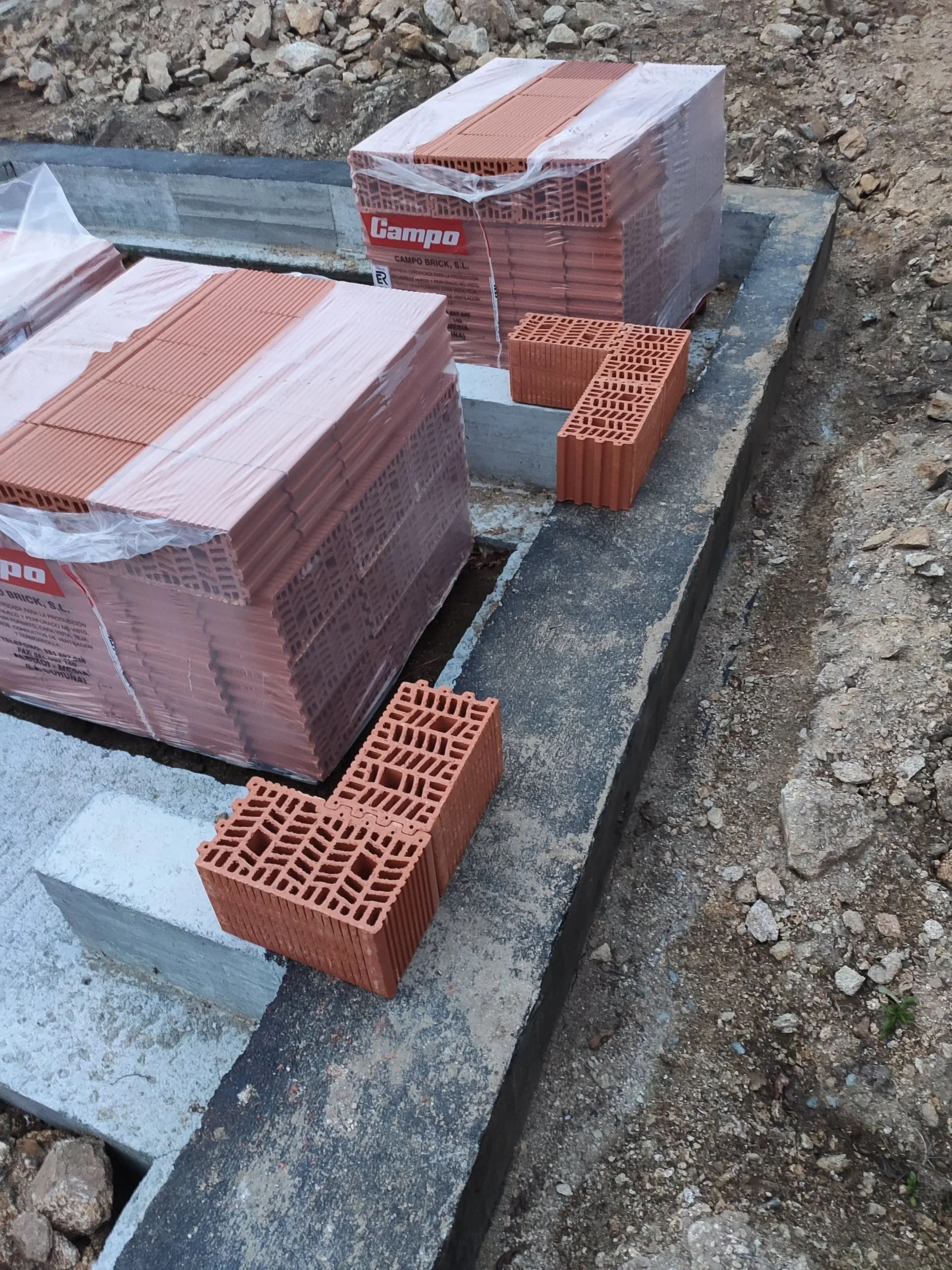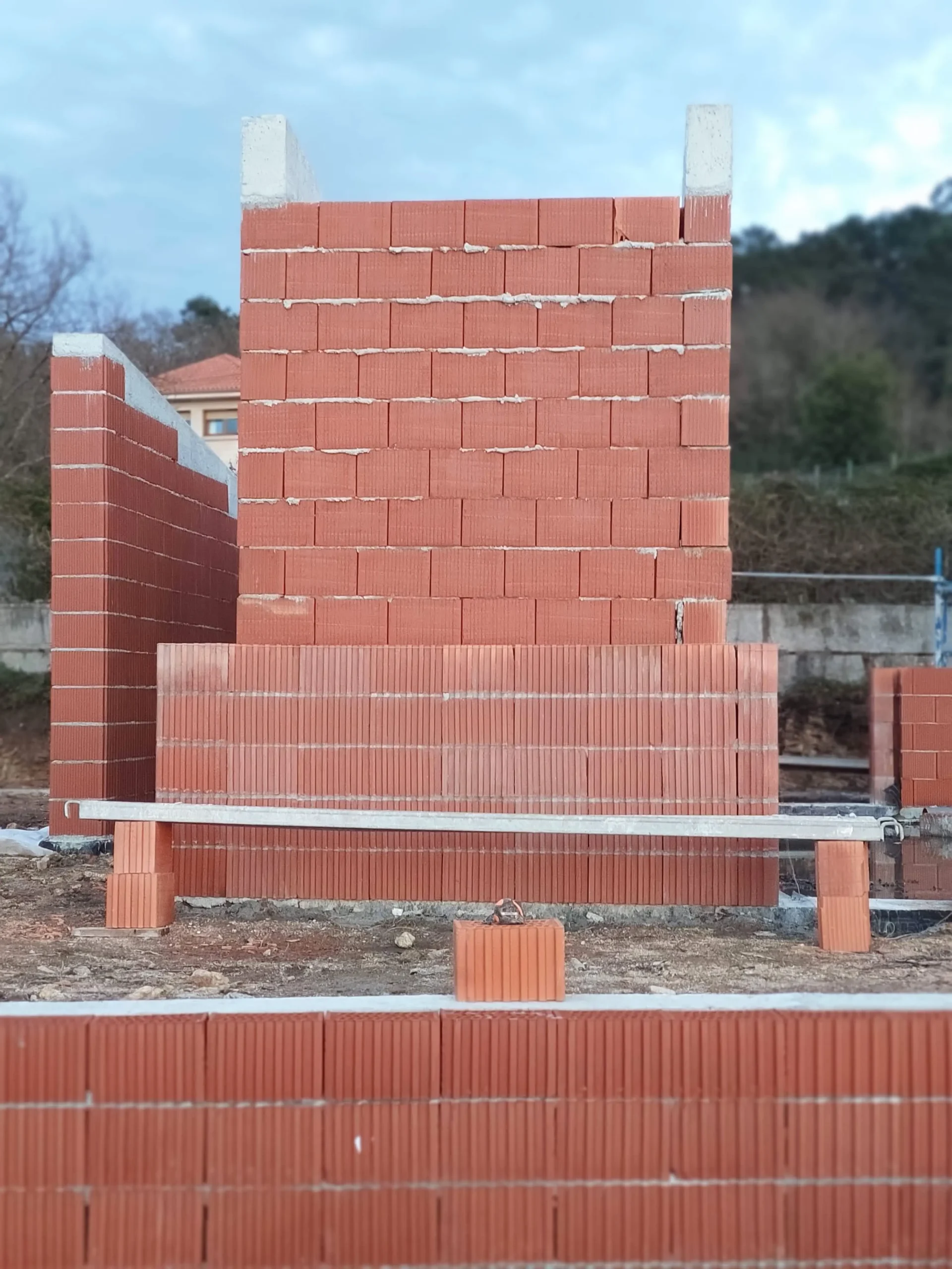 Para la construcción de estos cerramientos se empleó termoarcilla de Cerámica Campo, utilizando piezas termoarcilla base de 19 y 29, junto con diferentes piezas especiales —base, esquina, media y terminación— que permitieron resolver con precisión los encuentros y remates de la obra.